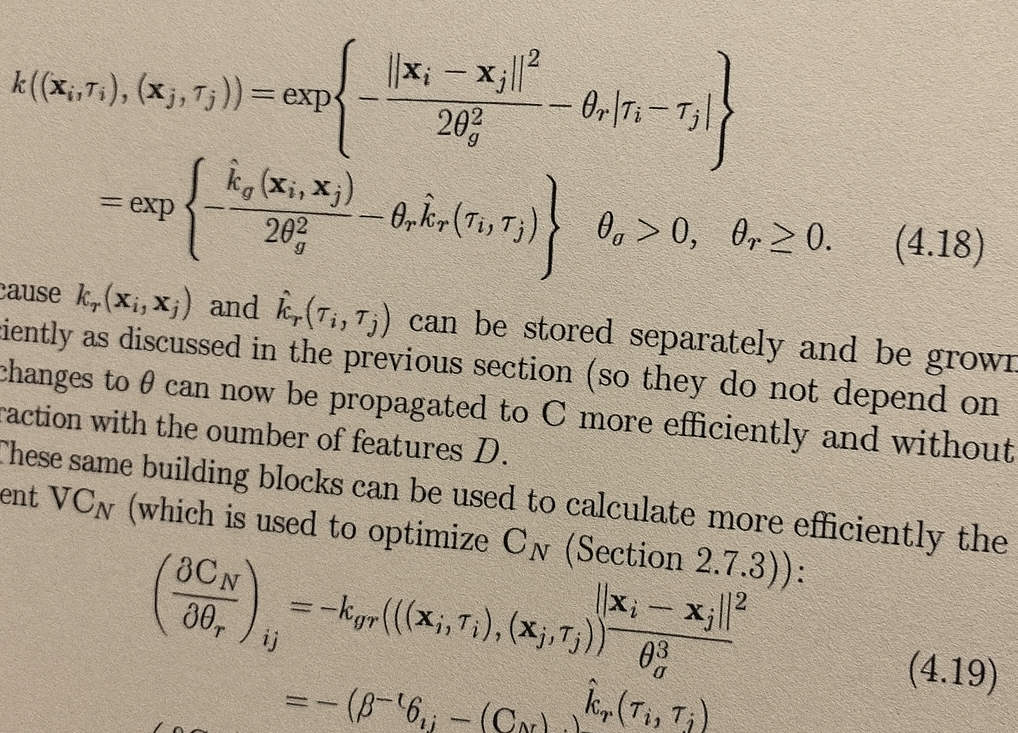 Voor machine learning fanatici: ik bedacht het leer-algoritme Optimized Decrease of Relevance (ODR). Door de nabijheid in tijd van datapunten in de kernel-functie van een Gaussisch proces the pluggen, kon ik modelleren dat hoe langer de tijd tussen het meten van datapunten, hoe minder ze waarschijnlijk over elkaar vertellen. Dit maakte ODR adaptief. De mate waarin dit effect gold modelleerde ik met een hyperparameter die efficiënt, online (dus tijdens gebruik van het model) geoptimaliseerd kon worden. Dit maakte dat ODR om kon gaan met veranderingen in variërende snelheid: het past zich continue aan aan de mate waarin de input (zoals bijv. gemeten hersenactiviteit) stabiel is.